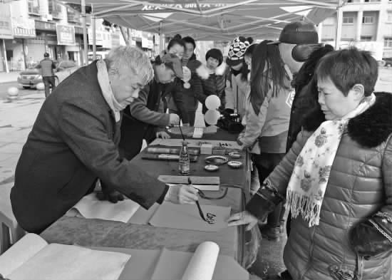 当天 ,知名书画家回楚佳原本要参加一堂书法课 ,可为了当天的书画名家送春联活动 ,他最终还是推掉了。回楚佳说 ,贴春联是我国新春佳节的一项传统民间习俗活动之一 ,这样的传统习俗不能丢。书画家为居民们书写春联 、送上新春祝福 ,使书法的传统艺术融入民俗节庆中 ,让居民能够欣赏书法之美 ,感受书法的艺术魅力。多年来 ,他一直坚持参加由市书法家协会 、双清诗联书画协会组织的写春联送春联活动。“这样的公益活动 ,我觉得很有意义 ,只要有邀请 ,我都会参加。目前 ,美好社区行已经举办了9场活动 ,我几乎都参与了。”回楚佳笑着说。
